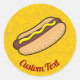 ilustracion personalizado de hotdog. Fondo del patrón de comida basura amarilla sin costuras. Texto personalizado.