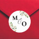 Redonda Pegatina inicial de boda personalizada con flores