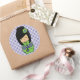 Muñeca japonesa Kokeshi dibujada digitalmente. Kimono con acento limón verde y morado.