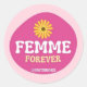 Redonda Pegatina Lésbica para siempre Flor Rosa