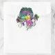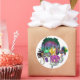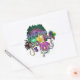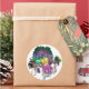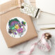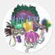 Pegatina redondo para igualar nuestra invitación al "Mardi Gras" con una imagen festiva de un alce con plumas, máscaras con plumas, un gorra secuenciado por fuchsia, cuentas, globos morados, verdes y dorados, y dos corazones amatistas morados. Ver pegatina de vinilo cortado por personalizado, confeti, invitación, sobre, bolsa de favores, caja de favores, etiqueta de favor, bolsas de regalo, etiqueta y papel de envoltura. Ver toda la colección de Pegatinas del Mardi Gras en INVITES | Sección Pegatinas y etiquetas.
