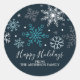Redonda Pegatina moderno de copos de nieve azul