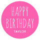 Redonda Pegatina moderno y simple de feliz cumpleaños rosa