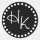 Sellos para sobres en monograma elegantes realizados en blanco y negro. Un sólido pegatina redondo negro, con puntos de polka blanco alrededor del borde y iniciales blancas de dos letras, en el centro. Excelente con nuestro conjunto de bodas en monograma blanco y negro.