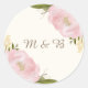 Redonda Pegatina Monograma Boda de peones rosados de época