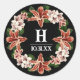 Este pegatina monograma de apellido combina elegancia con una estética atrevida y oscura, lo que lo hace perfecto para un toque sofisticado en favores, bolsas de regalo o invitaciones. El diseño presenta una letra monograma central con la fecha del evento debajo en blanco clásico, fijada sobre un fondo negro profundo. Alrededor de la primera planta se encuentra una flor exuberante y bien arreglada, con ricos tonos de rosa rubor y naranja cálido, acentuada por hojas verdes vibrantes. Este pegatina aporta un toque refinado y personal a todo tipo de evento, ideal para aquellos que quieran incorporar un tema floral oscuro y romántico en su decoración.
