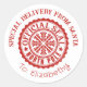 Redonda Pegatina navideña de entrega especial de Santa