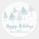 Árboles únicos azules Pegatina Happy Holidays ambientado en un fondo blanco.