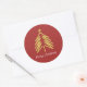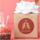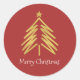 Un llamativo diseño de árbol de Navidad con un falso efecto de Relieve metalizado y un fondo rojo festivo.