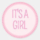 Pegatinas ideales para Baby Shower, rosada, con la frase It's a girl.