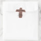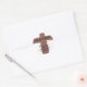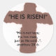 pegatina, fondo blanco con cruz de papel roto marrón y letras negras: '¡ÉL ES RISEN!" ,,, "No está aquí; se ha levantado, tal como dijo...". Mateo 28:6