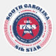 Este pegatina hace un maravilloso recuerdo o regalo con este diseño de temática estatal. El audaz y patriótico esquema de color y la prominente exhibición del nombre del estado, "Carolina del Sur", evoca sentimientos de libertad, lealtad y unidad. Ideal para celebraciones, feriados nacionales y fiestas de temática patriótica.