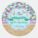Redonda Pegatina personalizada de cumpleaños feliz a Siren
