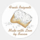 Redonda Pegatina personalizado de amor al horno recién hec