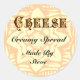 pegatina de queso personalizado con letras góticas y arte de una flor de leña vintage de color amarillo cremoso y naranja.