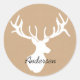 Navidades pegatinas de vacaciones con un aspecto natural y sencillo, presenta un fondo de color canto con una silueta de roble de ciervo blanco y un área que puedes personalizar con tu nombre.