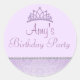 Este elegante pegatina de cumpleaños personalizable cuenta con una tiara morada sobre un fondo morado claro. Personalizar añadiendo tus detalles en la letra de tu elección!
