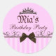 Este moderno pegatina de cumpleaños de personalizable cuenta con una tiara y un arco en un fondo rosa. Personalizar añadiendo tus detalles en la letra de tu elección!