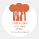 Un gráfico del gorra de un chef naranja con herramientas de cocina creando un espacio negativo domina este pegatina promocional. Lo suficientemente versátil como para trabajar en una empresa de restauración, un chef personal o un panadero. Disponible en colores alternativos con productos coincidentes. com