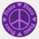 Paz - pegatina morado oscuro con corazones morados y señal de paz.