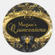 Redonda Pegatina Quinceanera de Damask Gold y Black