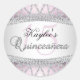 Redonda Pegatina Quinceanera de diamantes plateados y rosa