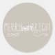 Pegatinas redondos con un fondo gris con un texto blanco que lee Merry y Bright. También tenemos las tarjetas de fotos Modern Merry y Bright para vacaciones, franqueo y etiquetas de dirección.