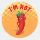 Caricatura de pimienta roja y caliente. Diseño original. Versión con texto de personalizable y fondo de degradado. Estos pegatinas se pueden usar en botellas de salsa y otros alimentos picantes. Por diversión y como señal de advertencia. En blanco en la parte posterior para mensajes manuscritos.