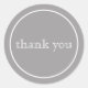 Un simple agradecimiento minimalista en tipografía blanca y elegante sobre un fondo plateado/gris.