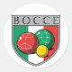 Este colorido gráfico Bocce presenta tres bolas Bocce en un escudo sobre la bandera italiana de verde, blanco y rojo con la palabra Bocce.