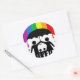 Padres protegiendo a la familia del arco iris usando el paraguas