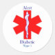 Pegatina redondo clásico, Glossy, Large, 3 pulgadas (hoja de 6) Medical Alert — Diabetic Type Use Personalize para cambiar texto para Type. Los pegatinas son excelentes para los archivos, notas y alertas a médicas y enfermeras y paramédicos de una enfermedad o afección grave.