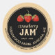 Fresas estilizadas en negro con borde kraft; fecha e ingredientes