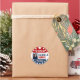 Pegatina de campaña electoral con colores rojo, blanco y azul. Añadir una foto.
