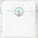 Este pequeño pegatina redondo presenta una corona blanca invernal sobre un fondo verde menta. Hace un gran pegatina de cierre o sello para vestir sus sobres esta temporada de vacaciones.