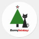 Redonda Pegatina redondo clásico de Navidades de gato negr