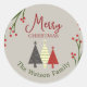 Sencillo, moderno, rojo y verde personalizado pegatina navideño con pinos coloridos, ramas y bayas.