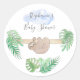 Añada este adorable sello para sobres Sloth Baby Shower a su puesto de ducha para bebés. Está decorado con una encantadora cigala de color agua y follaje de jungla. Personalizar con tus detalles.
