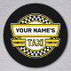 Nuestro logotipo de taxi personalizado es un regalo divertido para cualquiera que pase su tiempo conduciendo por su familia y amigos. Con el patrón clásico de damas amarillas y negras, hemos agregado un espacio para que usted lo personalize con un nombre.