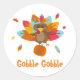 Pegatina de la ronda del pavo de Acción de Gracias, niño o pegatina de pavo Chica. Este pegatina brillante y colorido presenta un lindo pavo que se queda en una calabaza y texto de Gobble (el texto es editable). Puede cambiar fácilmente el tamaño y la forma del pegatina en el menú de personalización.