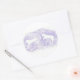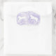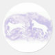 Este pegatina redondo representa a dos caballos blancos saltando sobre un fondo de lavanda.