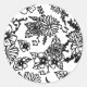 Redonda Pegatina redondo de flor silvestre blanca y negra
