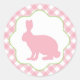 Redonda Pegatina redondo de gingham de conejo rosa