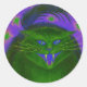 Redonda Pegatina redondo verde de gato asustado