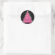 Añade un toque de encanto festivo a tus regalos o decoración con este pegatina circular con un árbol de Navidad rosa sobre un elegante fondo negro. Perfecto para añadir un toque único y moderno a sus vacaciones.