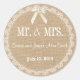 Redonda Pegatina Rústico de Burlap y Boda de encaje