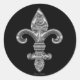 Elegante metálico plateado como Fleur De Li sobre fondo negro, hace un hermoso pegatina para la parte posterior de sus sobres.