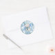 Pequeño y lindo muñeco de nieve usando gorra y bufanda azul claro de invierno y un marco floral de Navidades verde brillante. Gran idea de Navidades para un amante de todo azul.