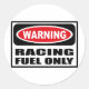 Pegatina SOLO DE COMBUSTIBLE DE CARRERAS de advertencia, puede personalizar en www.WarningSignShirts.com y presenta una señal de advertencia roja y negra y COMBUSTIBLE DE CARRERAS SOLAMENTE en negrita para advertir al mundo. También puede personalizar a su propio Pegatina de signos de advertencia con el texto que desee.