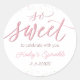 Decora tu dulce favor o regalo con esta dulce pegatina de evento personalizada que presenta caligrafía y pequeñas salpicaduras de rosa y verde.